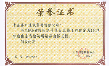 海川集團農(nóng)業(yè)大學(xué)科技樓項目榮獲山東省泰山杯2017-05-31海川集團七分公司承建的農(nóng)業(yè)大學(xué)科技樓項目近日榮獲山東省建筑工程質(zhì)量最高獎—“泰山杯”。今年4月,山東省“泰山杯”驗收專家組一行4人在市建筑業(yè)協(xié)會負(fù)責(zé)人的陪同下,對我單位申報“泰山杯”的青島農(nóng)業(yè)大學(xué)科技實驗樓進行了驗收。青島農(nóng)業(yè)大學(xué)科技實驗樓工程用于科技實驗室和公共平臺實...