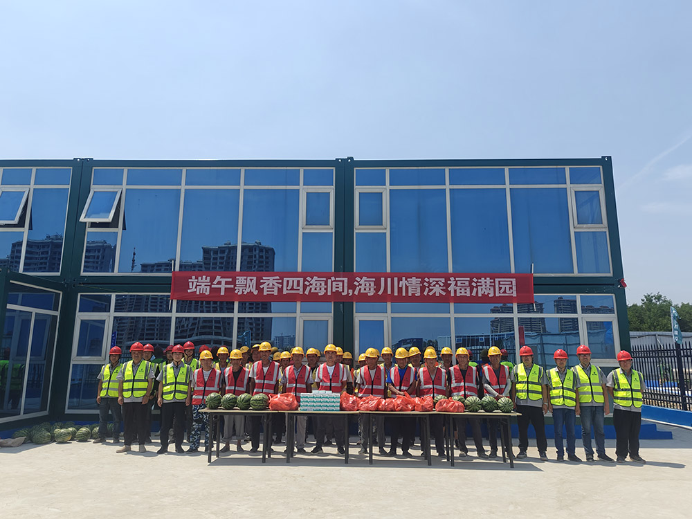 端午“粽”情飄香 牢筑安全防線2020-06-266月25日,海川建設(shè)東營勝利花苑續(xù)建項目項目部開展以“迎端午送清涼,防暑降溫保安全”為主題的端午節(jié)活動,向現(xiàn)場施工人員分發(fā)粽子、雞蛋及防暑用品,并送上安康祝福,讓員工度過一個別樣而溫情的端午佳節(jié)。由青島海川建設(shè)集團施工建設(shè)的東營勝利花苑續(xù)建工程14區(qū)項目位于東營市東營區(qū)...