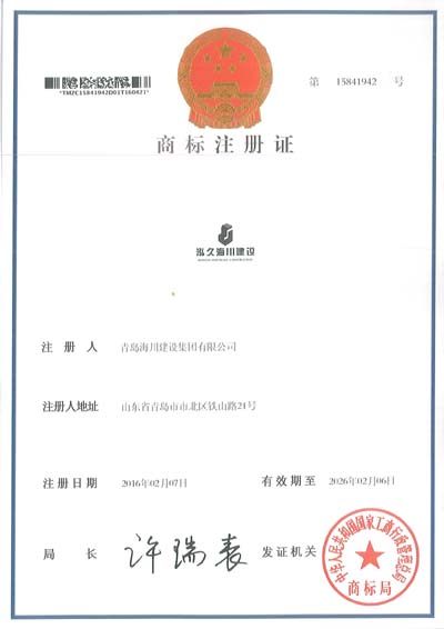 2016年5月16日,公司正式收到“泓久海川建設(shè)”商標(biāo)注冊證書,這標(biāo)志著海川集團沿用六十多年的標(biāo)志正式成為商標(biāo),受國家法律保護,為公司進一步創(chuàng)建企業(yè)品牌、搶占市場先機、開拓埠外市場夯實了基礎(chǔ)。